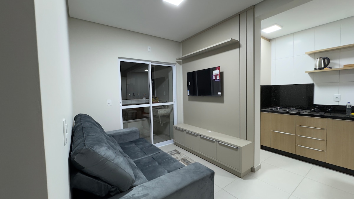 MASCOTA PROHIBIDA. Apartamento con capacidad para hasta cuatro personas, con dos habitaciones siendo una suite, con una cama doble y otra habitación con una cama individual y un asistente más. Sala de televisión de 49 pulgadas, sofá cama, internet, cocina completa, lavandería, baños sociales, barbacoa de carbón, pantalla protectora en las ventanas. Garaje cubierto para un coche. Apartamento bien situado, a 15 minutos de las playas Morro dos conventos y Arroio do Silva, a cinco minutos de la UFSC y del parque ecológico Belizoni.