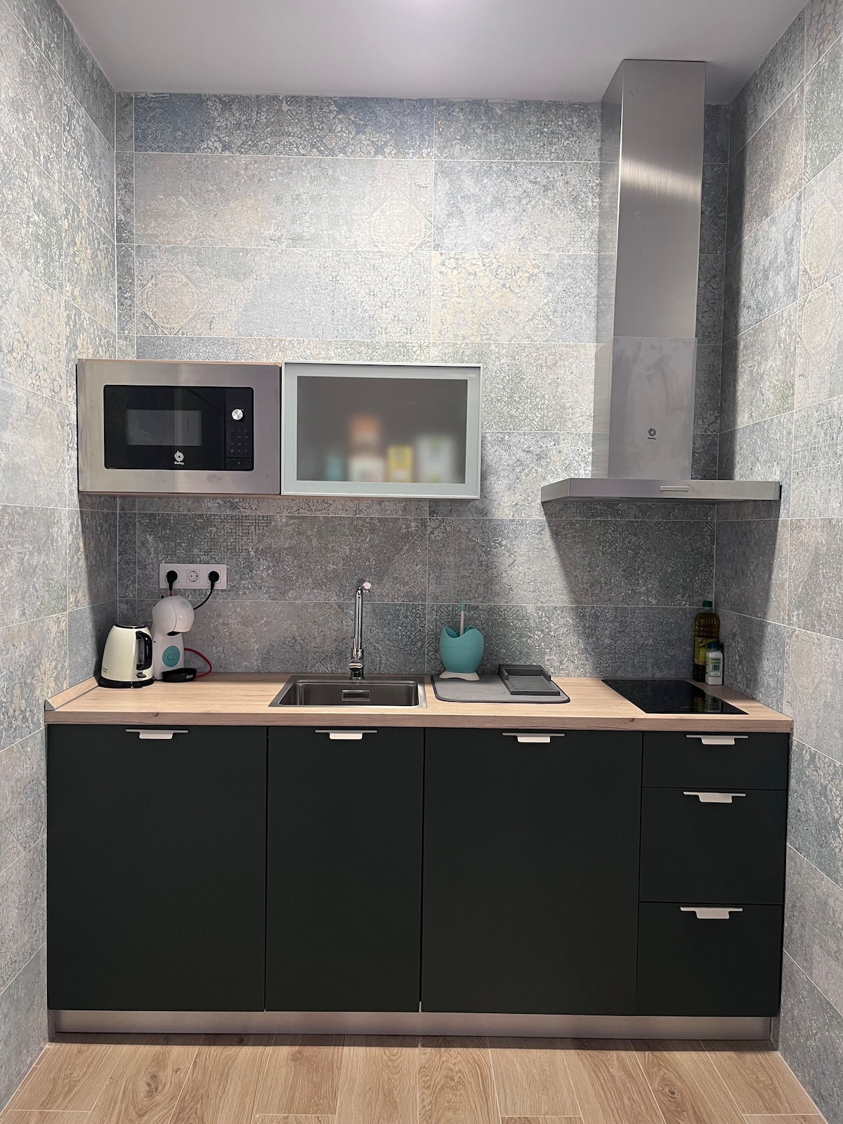 Nuestros estudios con cama de matrimonio, miden 22 m2 aprox y tienen vistas al patio interior o a la ciudad. La zona de cocina cuenta con cafetera, tostadora, microondas con Grill, frigorífico o nevera, vitrocerámica y menaje básico. El baño tiene ducha y secador de pelo. Completan sus instalaciones TV con pantalla plana, wifi gratuito, cama de 150 x 200 cm. Sus diferentes tipos de decoración (funcional, mediterránea o sofisticada) crean en las estancias un estilo moderno y acogedor.
