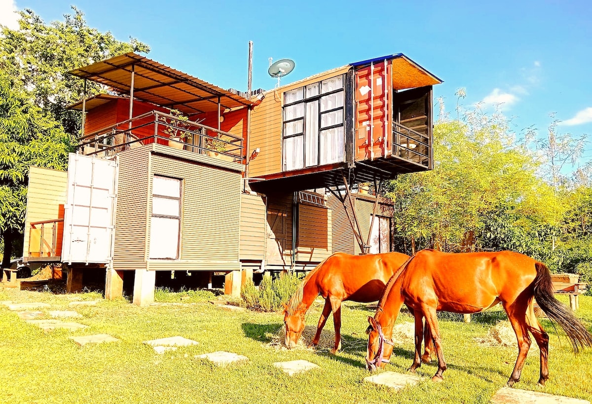 Nestled on the Sagana River in Kirinyaga & foothills of Kiambicho Hills in Muranga, this modern container living is at the heart of the white water rafting Mecca. We are neighbours to the famous Savage wilderness white water rafting location. We are just over an hour from Nairobi and only 45minutes after the duel carriage is complete. The design is spectacular with all the modern amenities in an idyllic farming and riverfront context. We also have stables and dog kennels for animal lovers.