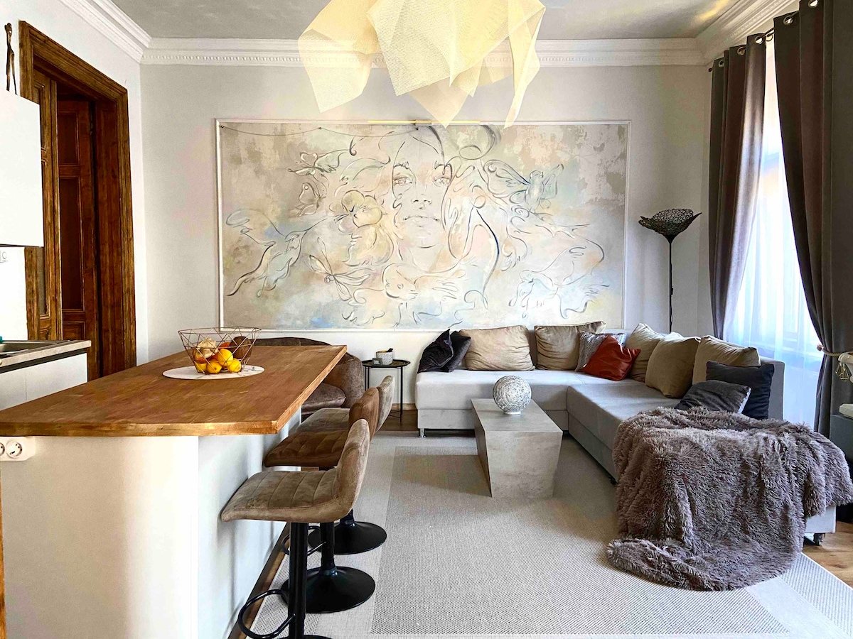 B' Design Apartment: mejor que en casa, donde puedes sentir el encanto mágico y el ambiente de la ciudad. Este apartamento único en un edificio carismático y protegido construido en el siglo XIX te espera con su diseño contemporáneo, sofisticada atención al detalle, lámparas únicas y decoración especial, cerca del centro y de atracciones famosas. El apartamento no solo es elegante, sino también muy cómodo y totalmente equipado. Trabajamos incansablemente con todo nuestro corazón y alma para que nuestros huéspedes estén felices.