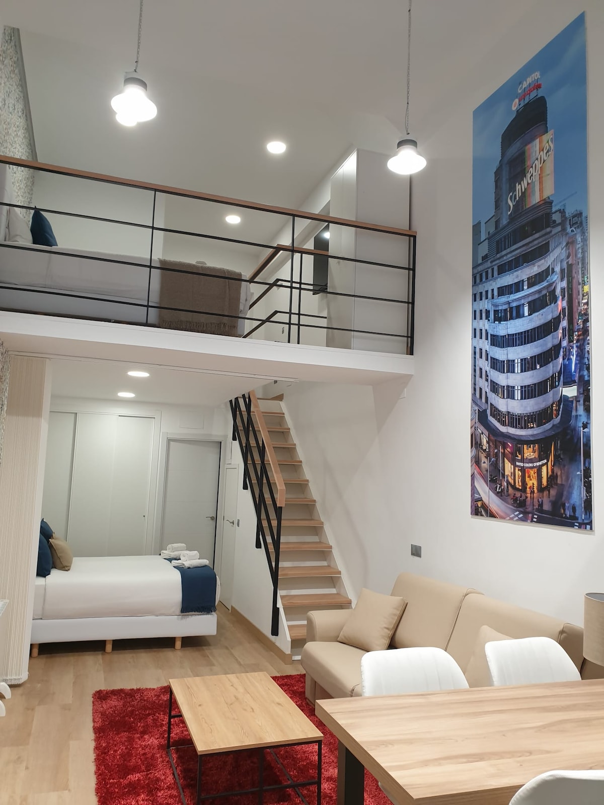El estudio está ubicado a unos metros de la Puerta del Sol, Plaza Mayor, El Rastro y otras atracciones turísticas. El loft está diseñado con una especial atención al detalle para aquellos que busquen algo más que un alojamiento en el centro de la ciudad. Piezas de arte contemporáneo y antigüedades francesas y españolas de los S. XIX y XX se combinan para formar un entorno único para el que se han recuperado muchos elementos originales de un edificio que data del S. XVIII.