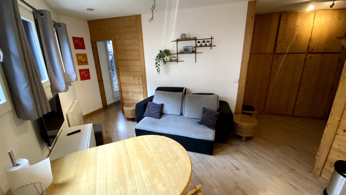 ¿Sueñas con escapar a los Alpes franceses? No busques más, nuestro pequeño estudio de 14 m² ubicado a 2 pasos del centro es el lugar perfecto para tu estancia en Chamonix. Cuidadosamente diseñado para proporcionarte toda la comodidad que necesitas, es pequeño pero ideal para una persona o una pareja que busca un alojamiento económico, limpio y tranquilo. Tiendas cercanas, a 5 minutos a pie de la estación de tren. ¡No necesitas automóvil!