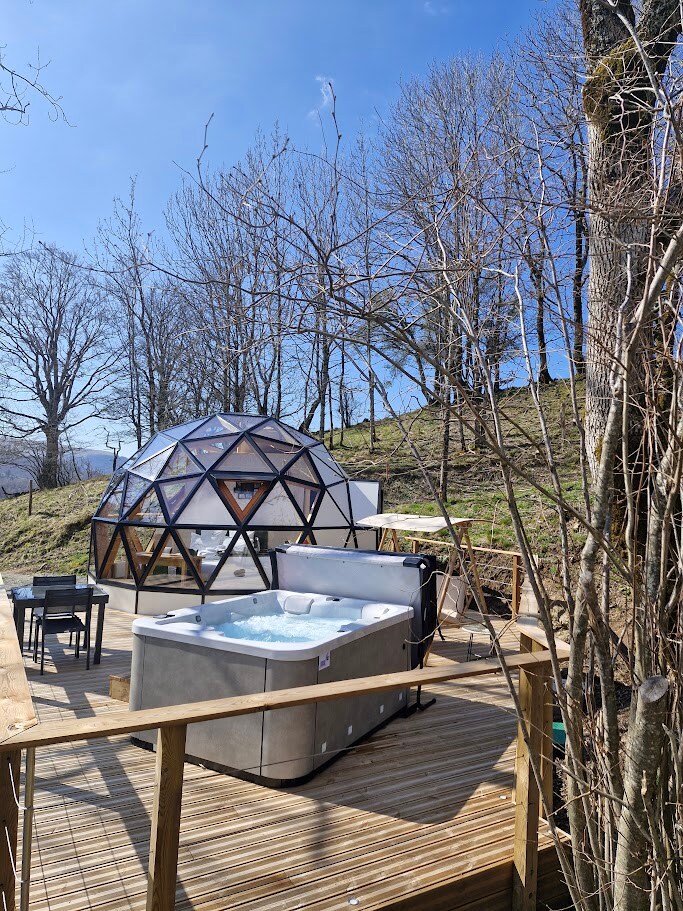 En el corazón del Cantal viva una estancia 100 % insólita. Ven a vivir una experiencia única e inolvidable en una cabaña en un árbol con spa privado. En este alojamiento insólito con una superficie de 25 m² y un altillo de 12 m² encontrará todas las comodidades y el lujo para pasar una agradable estancia. ¡Disfrutarás de una terraza de 25 m² con un spa climatizado a 37 °C durante todo el año! Esta cabaña con decoración de temática «campestre chic» le seducirá con sus acogedores muebles.