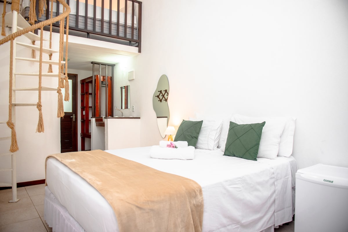 Disfruta de una experiencia elegante en este lugar bien ubicado. Nuestra suite está situada cerca de todos los servicios. Gastronomía, ocio, compras, cajero automático, todo a 10 minutos de Praia do Forte y a un paso de los mejores atractivos de la ciudad. Estamos en un barrio residencial y arbolado con un paseo marítimo junto a la laguna, donde los paseos al atardecer son lo más destacado. Nuestra suite es muy espaciosa e independiente. Tenemos un hermoso balcón en un jardín con ducha.
