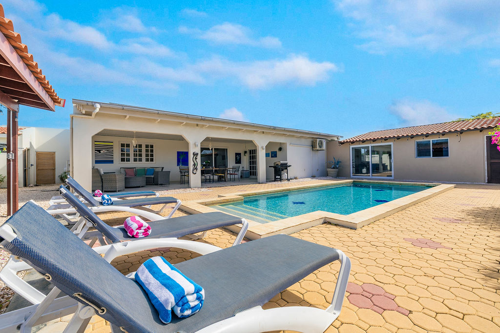 Disfruta de Aruba en esta acogedora casa con una piscina privada extragrande en un jardín tropical. La espaciosa zona de la piscina cuenta con una terraza con cómodas tumbonas, un patio al aire libre y una parrilla. Disfruta de tu día junto a la piscina o da un corto paseo de 15 minutos hasta la playa más cercana. En el interior, te espera una cocina moderna equipada con todos los elementos esenciales. Toda la casa tiene aire acondicionado y los dormitorios son modernos y espaciosos. Crea recuerdos duraderos con amigos y familiares en esta casa de vacaciones perfecta.