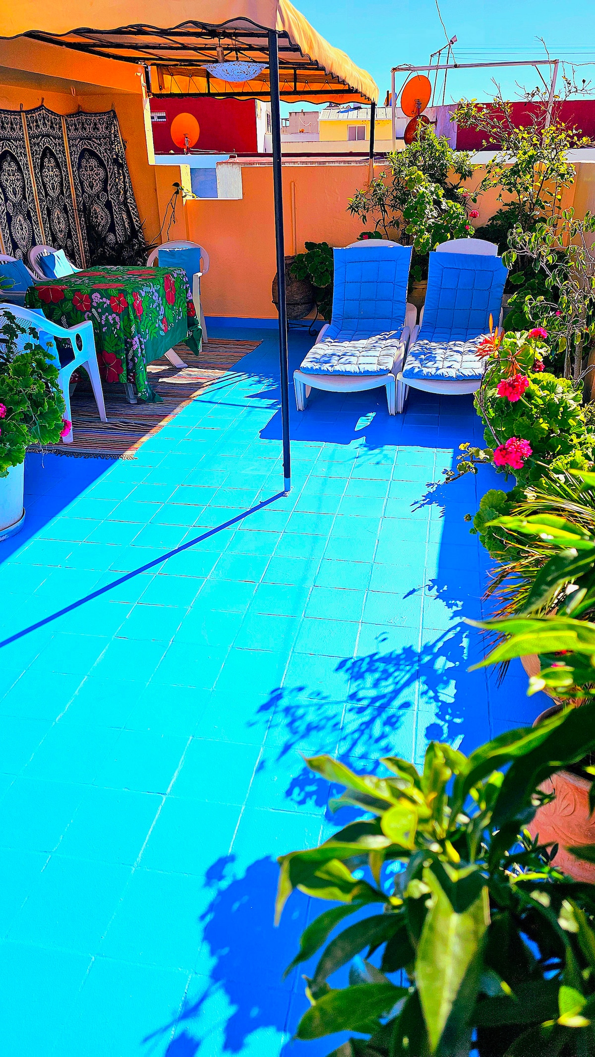 Bienvenido a nuestro acogedor refugio Tánger en el corazón de la antigua medina. Este Airbnb de 1 dormitorio ofrece una mezcla de encanto histórico y comodidad moderna. Relájate en el tradicional dormitorio marroquí, relájate en la sala de estar con un sofá cama y disfruta de las impresionantes vistas de la Medina desde la terraza. Sumérgete en la cultura y la historia de Tánger. Además, facilitamos los coches como propietario de la agencia de ubicación de coches a precios baratos.