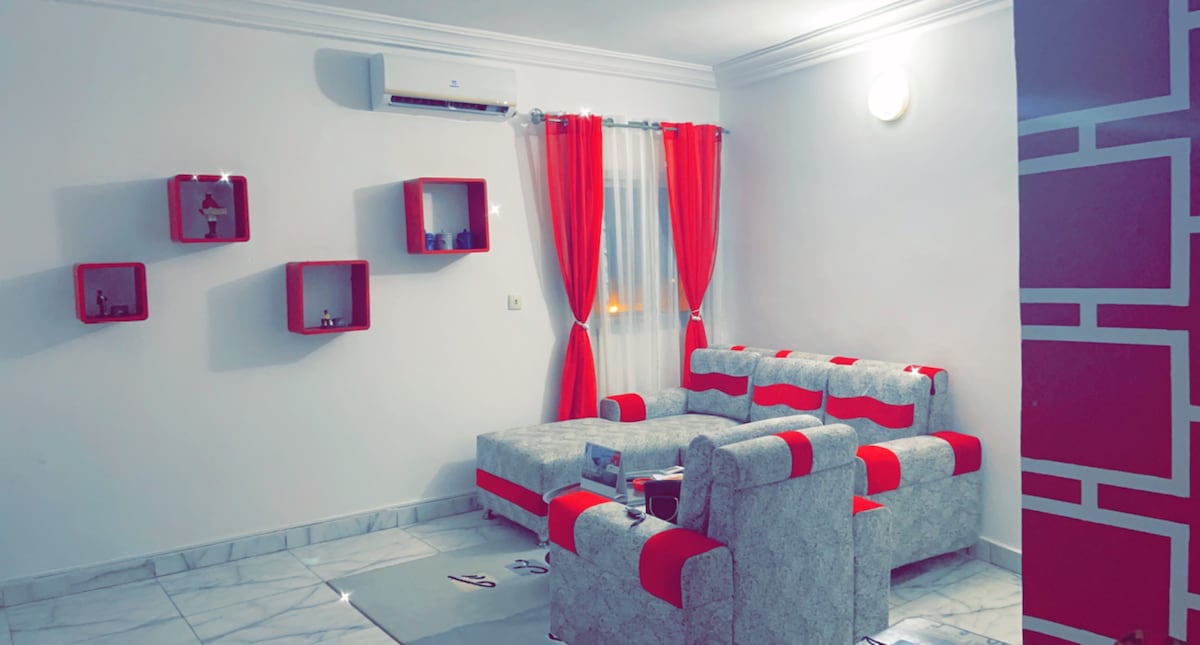 ★ ”..Alains Apartm. is well situated, he is a care taking..” Hortense ☞ 32” HDTV ☞ 50MBs Wi-Fi ☞ 7/7 Security Guard ☞ Water cooker for hot showers ☞ Air-Conditioner ☞ Free Parking » 9min drive to Kafolo Lagoon » 7min drive to Carrefour market » 30min drive to Airport Add my listing to your wishlist by clicking ❤️ the in the upper-right corner. If you have a 2+ reservation, you will need to use more furnitures than the bed. Don't worry we will show you how to use the other sleeping places.