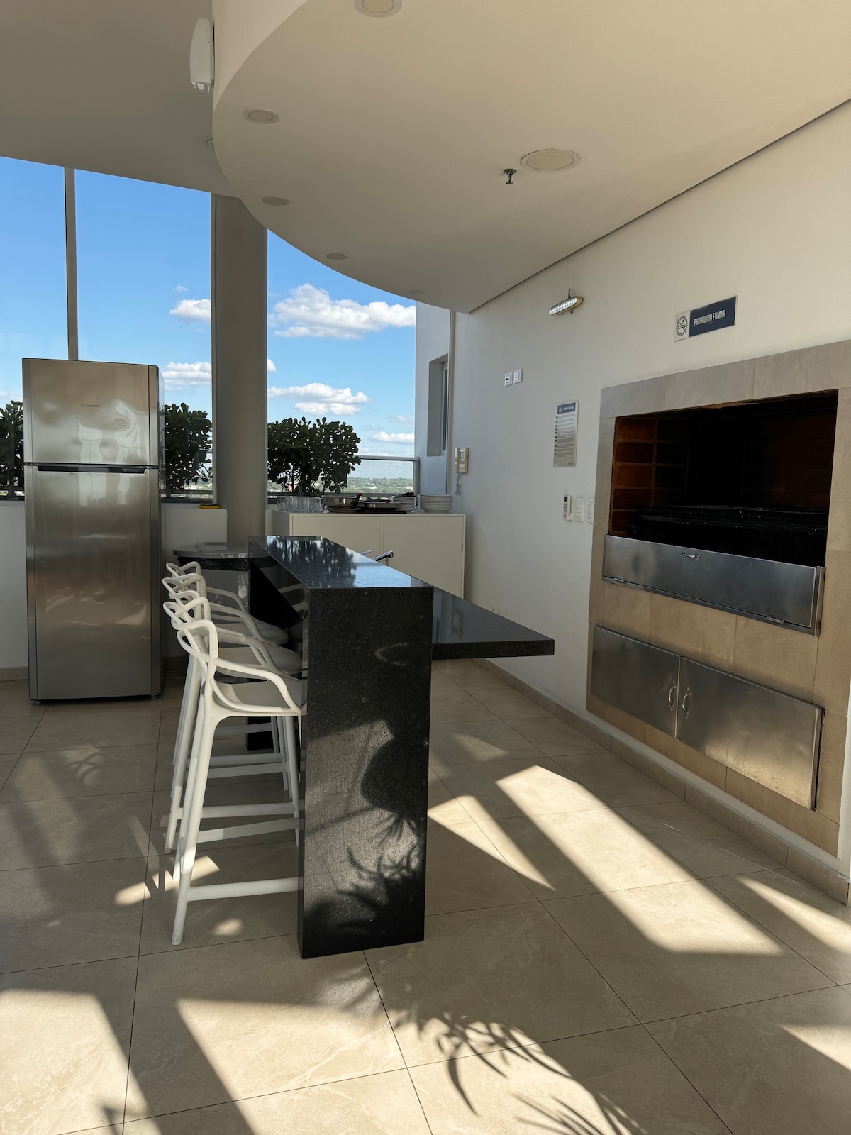 Disfruta de una experiencia con estilo en este alojamiento en la mejor zona de Asunción, a pasos de los shopping, lugares gastronómicos ; este moderno departamento cuenta con 3 dormitorios climatizados, sala comedor con TV climatizado, cocina totalmente equipada, con parrilla para barbacoa dentro del departamento , además piscina, gimnasio, zona de barbacoa en la azotea , estacionamiento y seguridad 24 horas.