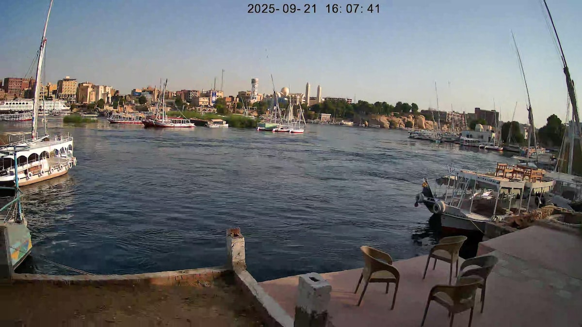 ¡Alójate en el corazón de la cultura nubia en la Isla Elefantina! ¡Con vistas a la majestuosidad del río Nilo, con vistas de 180 grados desde tu gran terraza privada! Diseñado para permitir el autoservicio con una cocina americana totalmente equipada y una sala de estar/ comedor. ¡Deja que nuestra familia cuide de la tuya ! El apartamento también tiene dos baños .. Un baño en la habitación con tres camas y un baño compartido