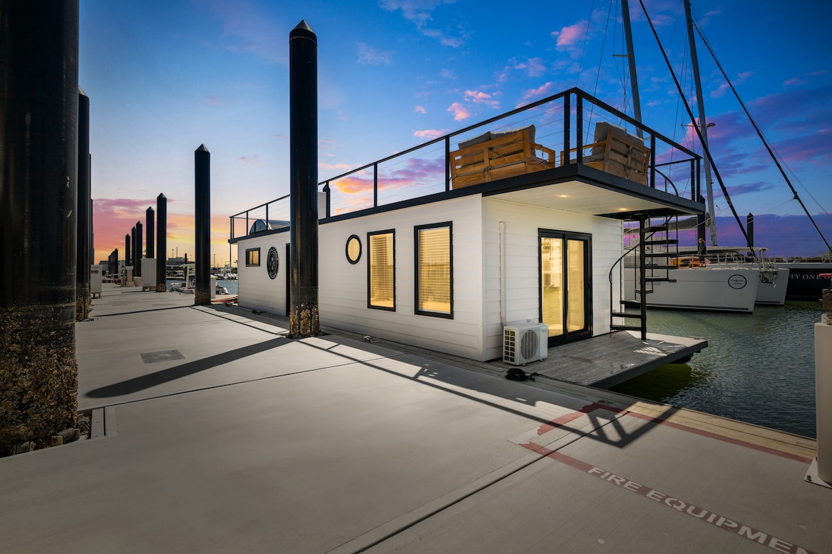 Bienvenido a «¡La Regencia!" Vivirás la" dulce vida" en esta casa flotante moderna, impecablemente construida y diseñada, que ofrece todos los servicios de un hogar, incluidos dos espacios habitables, una cocina gourmet, dos camas, dos baños, mobiliario de diseño y una terraza para disfrutar de las puestas de sol en el río Cape Fear. ¡Cerca de todo! Disfruta de un restaurante y un muelle de entretenimiento en el lugar, donde se llevan a cabo conciertos y festivales. Pasea por el paseo fluvial para disfrutar de vistas panorámicas, tiendas, restaurantes y entretenimiento.