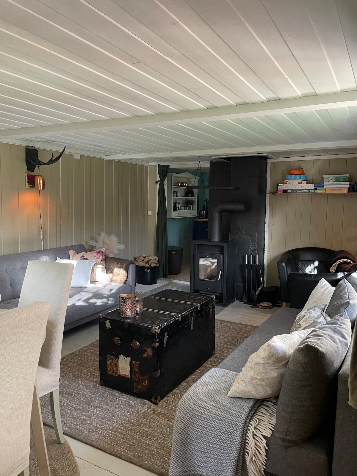 Recarga las pilas en un entorno rústico y encantador junto al agua, que realmente abraza el concepto de «hygge». Disfruta de la paz y tranquilidad con amigos o familiares. Invierno con chimenea y buenas comidas. Verano en zonas de senderismo pintorescas llenas de setas y bayas. Pasa la Navidad con nosotros. Organizaremos un árbol de Navidad, listo para decorar. La cabaña principal tiene 3 dormitorios con 7 camas, puedes acomodar a 8 usando el sofá. El dormitorio principal tiene una altura de techo de 4 m y el baño tiene un techo de luz completo. ¡Bienvenido!
