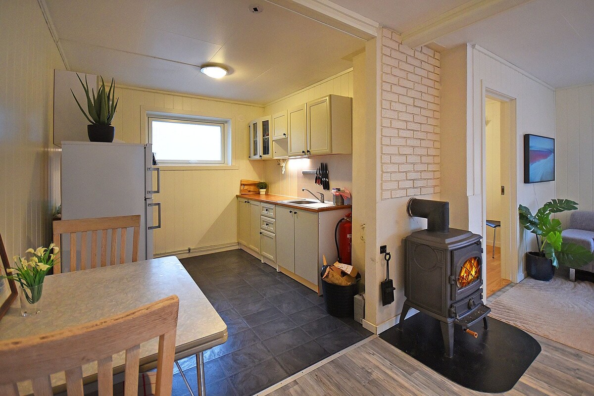 Cómodo apartamento en Svolvær con chimenea, aparcamiento gratuito y wifi. Dormitorio separado con cama queen, sala de estar con sofá y un rincón de cocina con servicios básicos. Baño moderno con suelo radiante, inodoro y ducha. El apartamento es de fácil acceso en la planta baja. El edificio es antiguo y escucharás a otras personas y niños viviendo en la casa, principalmente pasos, por lo que es importante que se mantenga el tiempo de silencio a partir de las 22 hasta las 07.