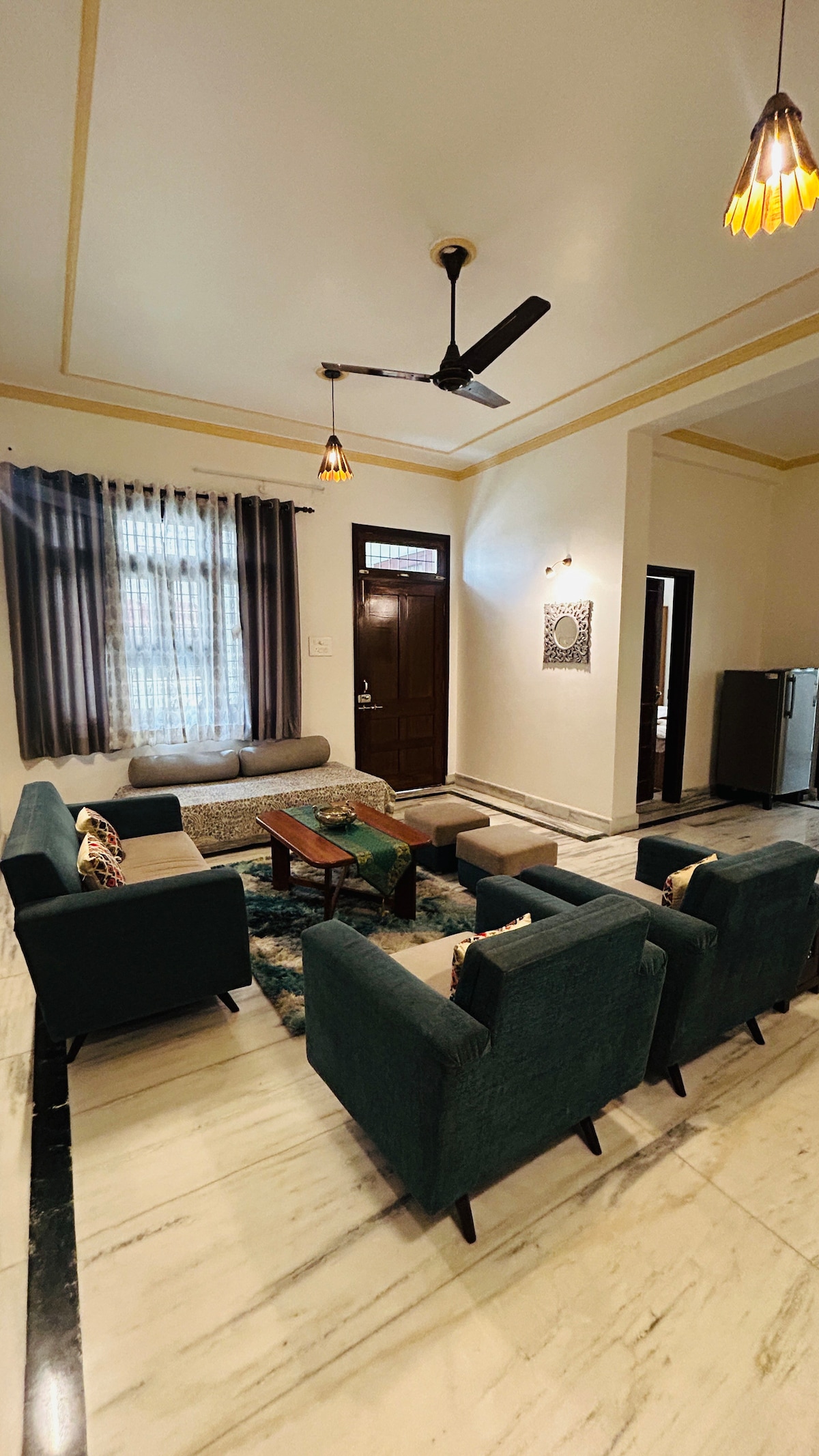 Bienvenido a nuestro hermoso 2BHK de temática vintage en Varanasi Perfecto para familias y peregrinos que buscan una estancia limpia, tranquila y cómoda después de las visitas al templo y al ghat. Decorada con muebles vintage y rústicos. Disfruta de habitaciones con aire acondicionado, wifi rápido y una relajante sala de estar en un alojamiento bien cuidado». Auténtica experiencia Banaras, el hogar combina el carácter tradicional. Ubicación privilegiada • A solo 7-10 minutos en coche de Kashi Vishwanath Mandir. • A solo 7-10 minutos en coche de Dashashwamedh Ghat Disponible: OLA y UBER.