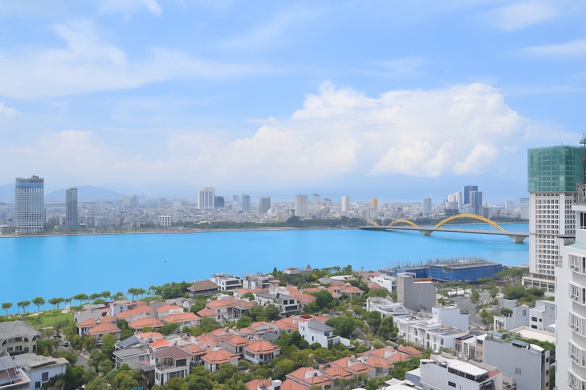 Set high on the 27th floor of Monarchy, this 80m² apt captures panoramic views of Da Nang’s skyline & Dragon Bridge, glowing in golden tones at sunset. Styled in terracotta hues and natural wood, it balances warmth with elegance — perfect for extended stays. Cook in the modern kitchen, do laundry in-unit, relax by the pool after a day of work or exploring. With cafés, marts, riverside paths just steps away, this home blends charm, convenience, and long-stay comfort. ✨ ADD US TO YOUR WISHLIST!