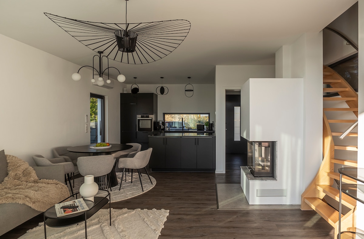 Cómoda casa de arquitecto independiente en Leipzig con capacidad para 5 personas. Se puede llegar al centro de la ciudad en 30 minutos, a la salida A9 Leipzig-West está a 15 minutos. Muchas oportunidades de compras están muy cerca. La casa tiene un gran jardín con 2 terrazas y está justo en el canal Elster-Saale. Tiene 3 dormitorios y 2 baños. Acceso privado al canal con un pequeño embarcadero disponible. Sauna en el jardín y kayak/sup disponibles bajo petición.
