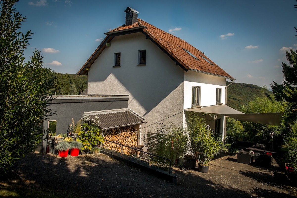 Amplio apartamento de 2 dormitorios en un adosado protegido. Céntrico pero tranquilo. A 3 minutos de la estación de tren. Hay una parada de autobús en la casa. A 5 minutos de la zona peatonal. A 30 minutos en coche del legendario Nürburgring. Un ambiente familiar y sin complicaciones te espera en una casa independiente. Ideal para parejas, viajeros solos, viajeros de negocios y familias. Aparcamiento gratuito en la calle.