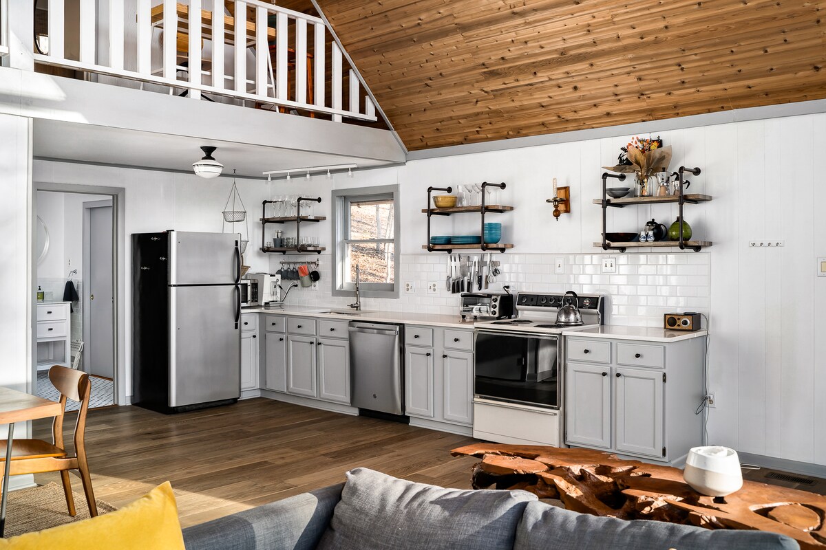 Welcome to your retreat, your Hidden Hideaway. Leave the hustle and bustle of the city to relax and rejuvenate in Lost River. This luxury minimalist cabin has everything you want and need whether you are looking for a quick weekend getaway or a month-long working vacation. Immerse yourself in nature on the screened in porch, gaze into the Milky Way stars as you sit around the fire pit, or curl up with a book in the sun drenched reading nook, you will find what you need at Hidden Hideaway.