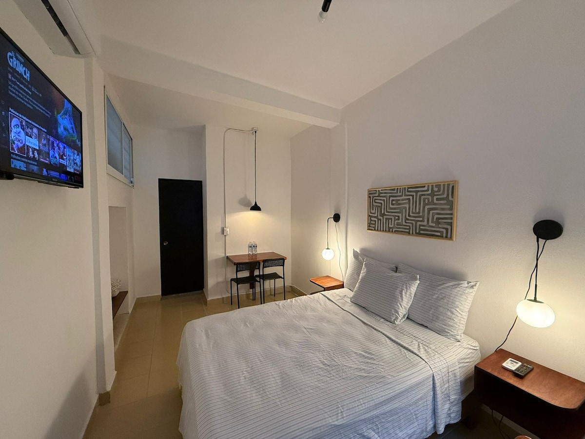 Es un departamento amplio, privado con Aire Acondicionado y una cómoda cama Kingsize perfecta para relajarse y descansar, se encuentra en una perfecta ubicación de la mejor zona de palenque "La Cañada", rodeado de grandes árboles. A tan sólo 5 min. caminando se encuentra la Estación de Autobuses y a 12 min. el Parque Central. - AE. internacional y Tren Maya a 12 min. en coche. - Zona Arqueológica a 18 min en colectivo. - Parada de colectivos a 5 min. caminando.