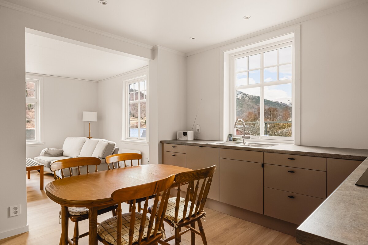 Nuestro hermoso apartamento de 3 habitaciones en la planta baja está disponible para alquilar. Perfecto para una pareja, una familia pequeña o 2-4 amigos. Dos dormitorios separados. Se incluyen sábanas y toallas. La cocina está totalmente equipada para cocinar y comer. Hay TV por cable y un agradable asiento en la sala de estar. Internet inalámbrico rápido. Baño grande con ducha, lavadora y secadora. Bonita vista al fiordo de Sogn y a las montañas. Buenas posibilidades de senderismo. Lugar soleado. Para llegar necesitas un coche.