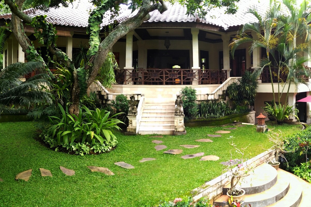 Disfruta de una experiencia única en la villa Pacekan Ubud, siente el ambiente balinés con jardín tropical y la voz del geco y la rana por la noche. Situado a solo 2,3 kilómetros del centro de Ubud (palacio de Ubud/mercado de Ubud) a 15 minutos a pie o 5 minutos en coche. Nuestro personal y equipo dedicados se asegurarán de que tu estancia sea perfecta y te ayudarán a registrarte tarde o temprano. La piscina privada, la cama con mosquitera y la cocina privada equipada harán que te sientas como en casa.