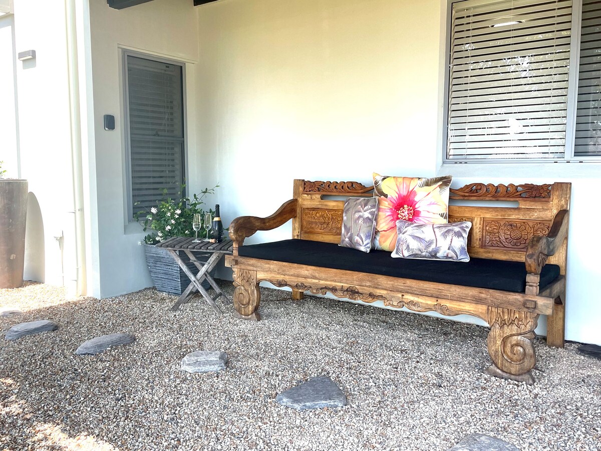 Creado dentro de nuestra casa, nuestro espacio para huéspedes tiene una cómoda cama tamaño queen y baño de azulejos con vistas al patio privado; las comodidades incluyen aire acondicionado, TV, nevera, hervidor de agua, microondas y tostadora (sin cocina) A poca distancia a pie de las playas para nadar en el río y a 5 minutos en coche de impresionantes playas oceánicas. Las principales cafeterías, restaurantes, tiendas y piscina de Ballina a solo 10 minutos a pie. El acceso es a través de una entrada privada (a través de una puerta enrollable) al vestíbulo donde se encuentra una caja fuerte para llaves. Nota: La última hora de llegada es a las 21:00