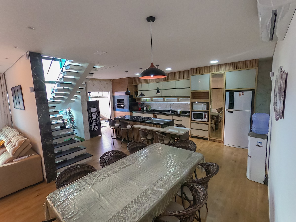 Despierta con el amanecer visto desde tu ventana. A un paso de la playa, la casa ofrece una gran zona de estar y ocio, una piscina espaciosa y una terraza frente al mar con jacuzzi climatizado, perfecta para disfrutar de tu estancia incluso en los días fríos. Hay 4 dormitorios con baño y aire acondicionado, 2 cocinas totalmente equipadas, una zona gourmet con barbacoa, 2 salas de televisión y amplios balcones con vistas increíbles. Dispone de 3 plazas de aparcamiento, capacidad para hasta 16 huéspedes y admite mascotas. Casa totalmente equipada, con todos los utensilios y la ropa de cama para tu comodidad.