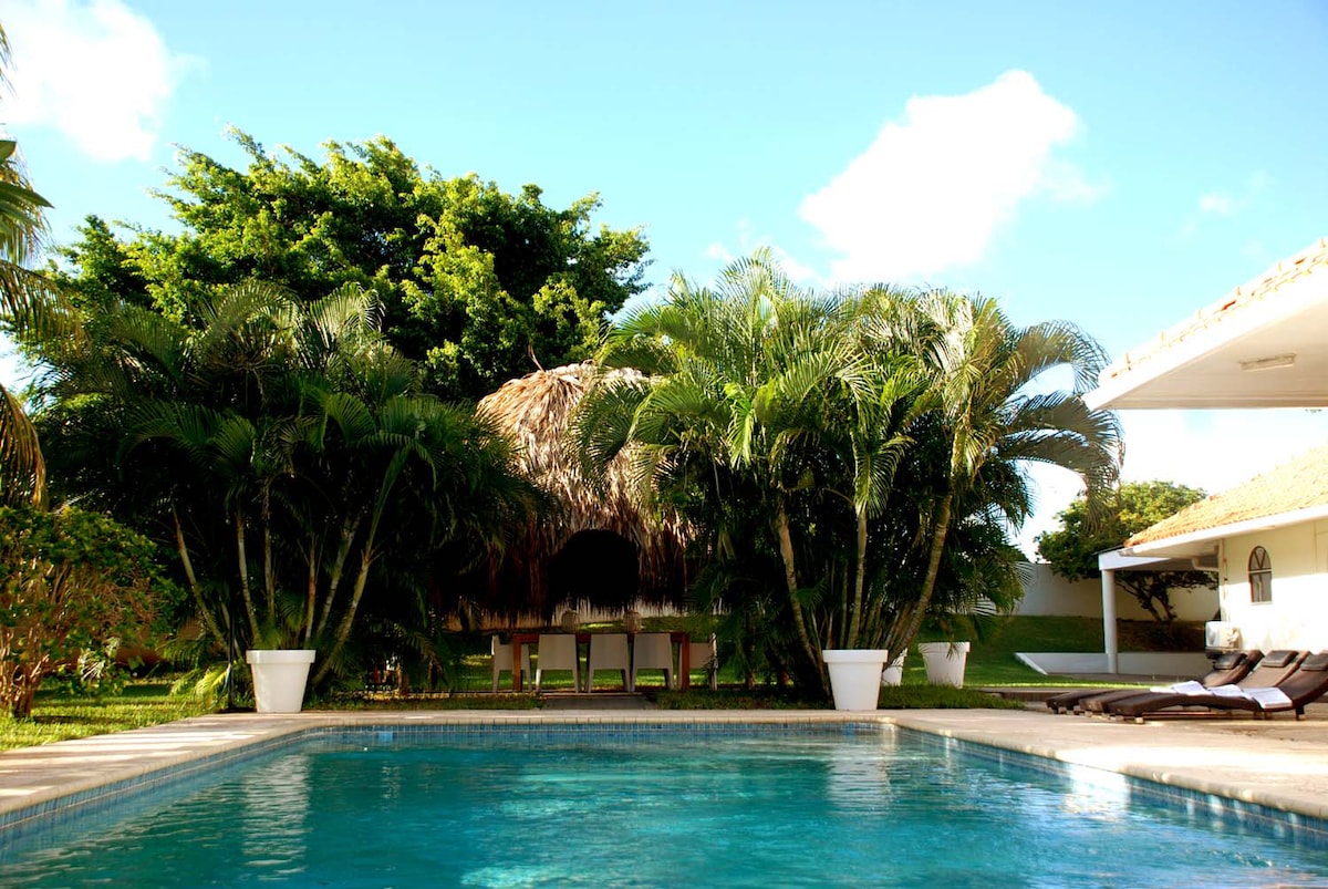 Gran villa, piscina de 17 m, amplio jardín tropical