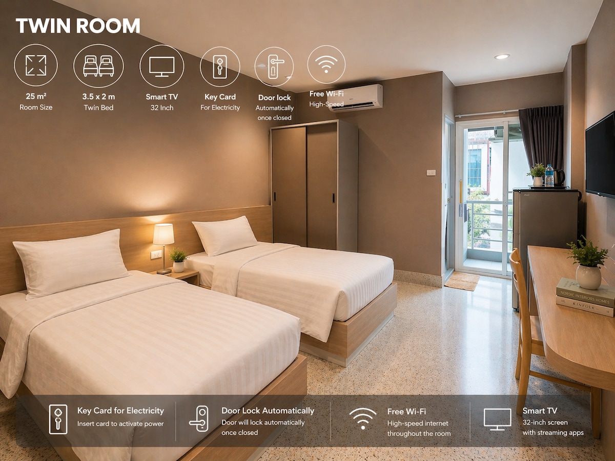 Recepción 24 horas con habitación doble limpia en Siam