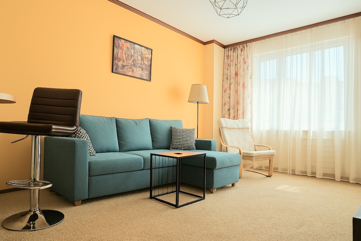 Ubicado en la tranquila parte alta de Bansko, cerca de los bosques, el apartamento ofrece una escapada tranquila de la ciudad (y del smog en invierno). La sala de estar tiene unas vistas impresionantes del valle y las montañas Ródope, complementadas con muebles de diseño y un pequeño escritorio con pantalla y silla de oficina. En el dormitorio, una cama de somier con colchón de primera calidad y ropa de cama de plumas promete un sueño reparador. La cocina está equipada con lavavajillas, vajilla y utensilios de cocina, además de una lavadora.