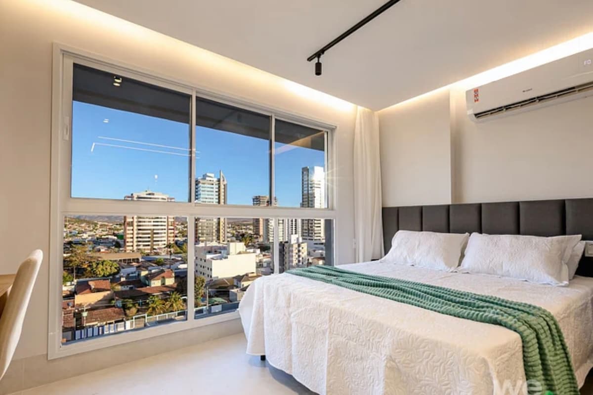 Estudio nuevo y acogedor en Barreiras/BA, en el barrio de Renato Gonçalves. Con cocina completa, aire acondicionado, wifi, TV, lavadora y secadora, y baño privado. Edificio con piscina, comedor al aire libre y gimnasio. A 13 km del aeropuerto, a 3 km del centro histórico y cerca de Río de Ondas. Ideal para descansar o trabajar. ¡La comodidad y la hospitalidad te esperan! 🌟