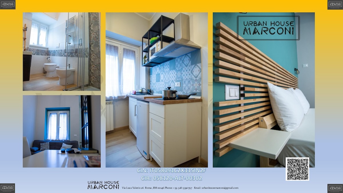 Apartamento en San Paolo/Marconi, un animado distrito universitario con todos los servicios. A 200 metros del hospital Bambin Gesù, a 400 metros de la parada de metro B de la Basílica de San Paolo, a 4 paradas del Coliseo (a solo 7 minutos en metro). A 100 metros se encuentra el parque Tevere Marconi, donde el nuevo carril bici te lleva al Vaticano en 7 minutos. También está bien comunicado con los barrios históricos de Trastevere y Testaccio, con Eur y Ostia Antica.