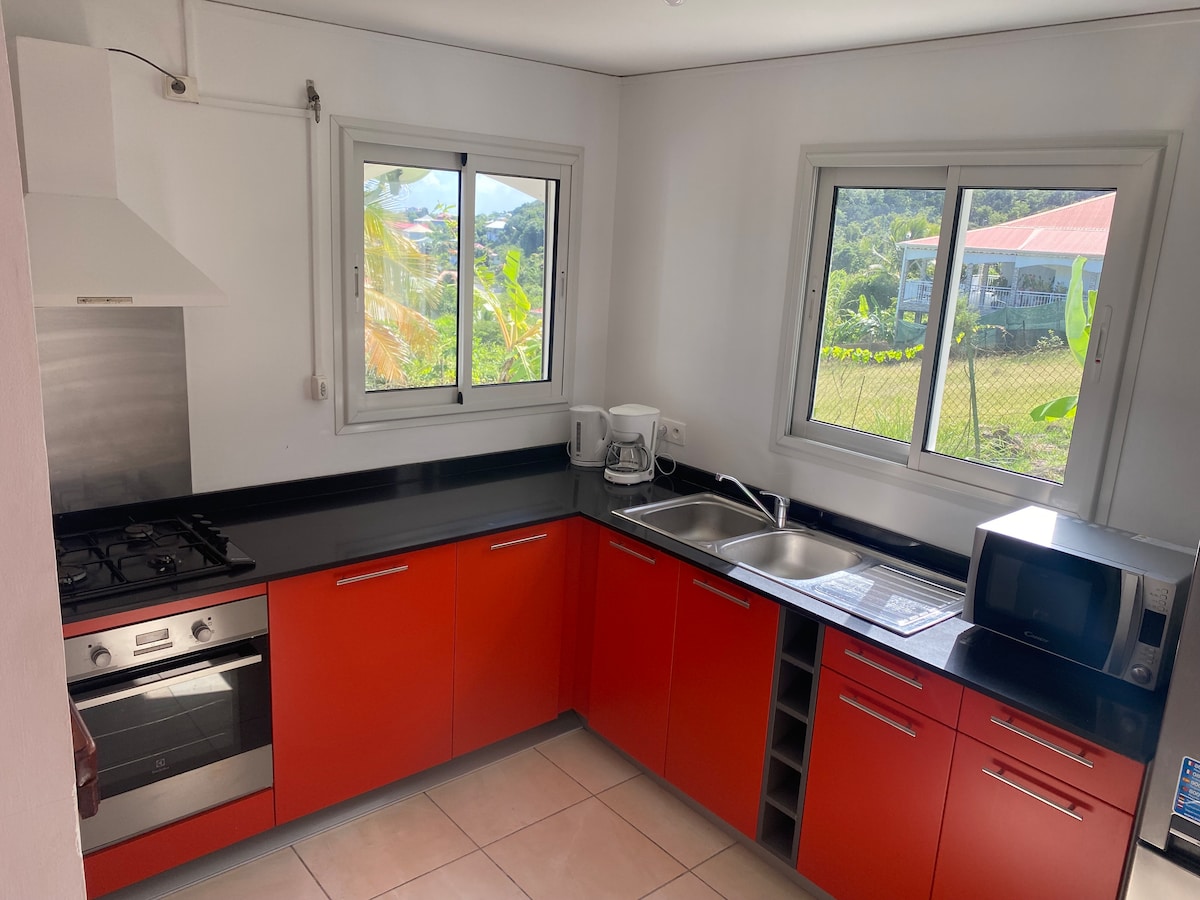 Estudio situado en una calma absoluta en el barrio residencial de Pain de Sucre. 1 habitación con aire acondicionado. Wifi Tiene 4 playas a menos de 5 minutos a pie del alojamiento, incluyendo la más famosa Le Pain de Sucre (lugar agradable para hacer esnórquel). Para los amantes del senderismo, tenemos el camello donde se puede ir a ver un bonito amanecer/atardecer. Vistas a Guadalupe y Terre-de-Bas. Será muy bienvenido en un entorno idílico. Unas vacaciones con total tranquilidad