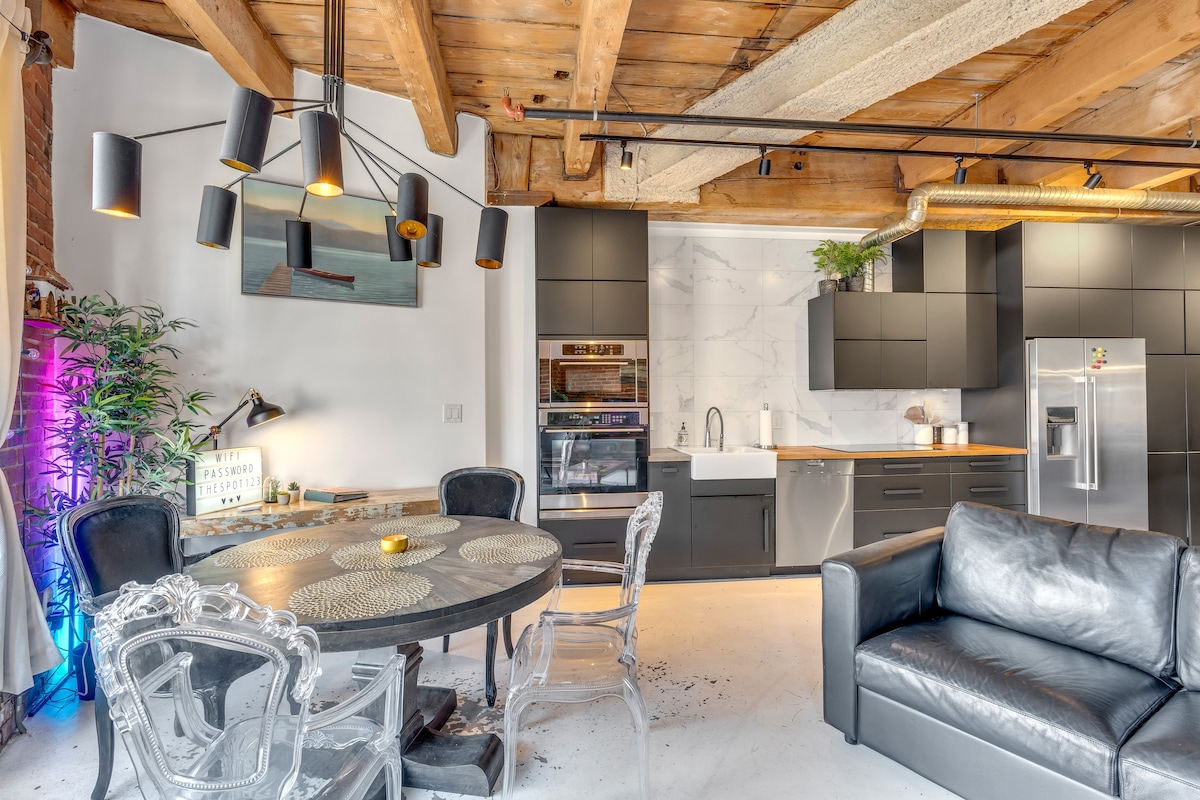 Bienvenido a mi hermoso 1200 pies cuadrados. ¡Loft al estilo neoyorquino en Gastown, en el centro de Vancouver! Este lugar es un verdadero hogar lejos de casa, totalmente equipado, con muebles cómodos y elegantes. Siéntate en tu sofá y en un televisor inteligente de 58 pulgadas, cocina en la cocina totalmente surtida con una estufa de gas o disfruta de un baño relajante en tu bañera azul. ¡Las opciones son infinitas! ¡Además, lavandería en la suite (lavadora y secadora)!