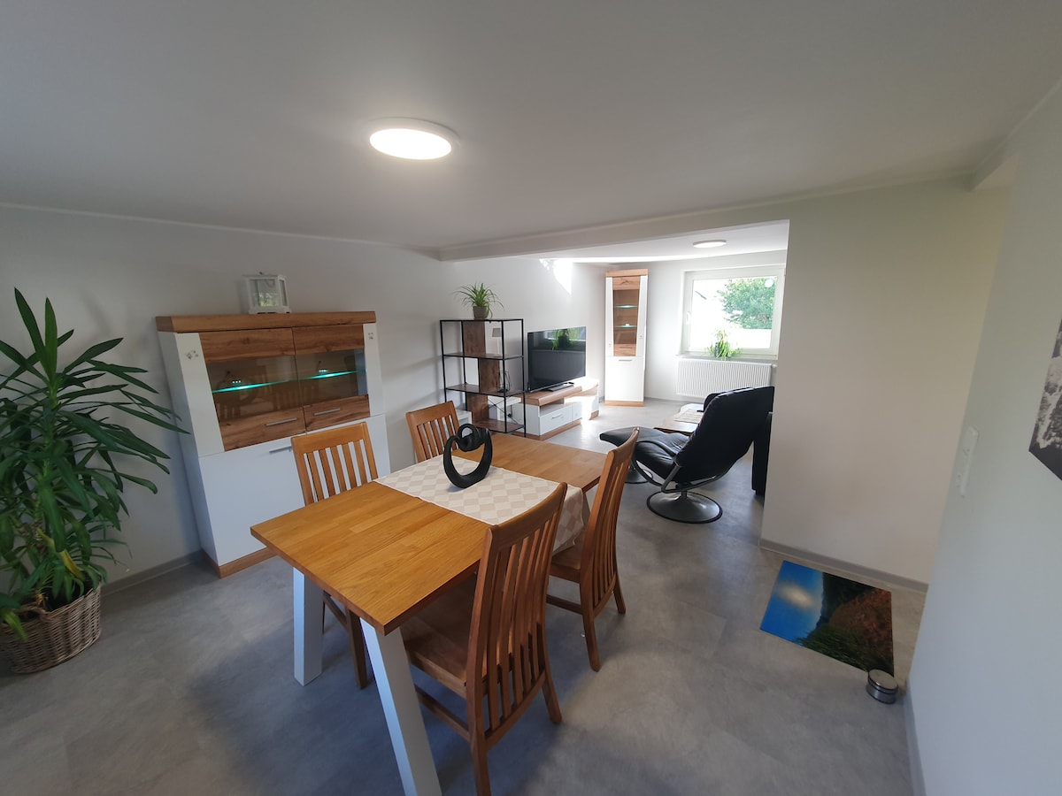 - Moderno apartamento de vacaciones de 2 habitaciones (aprox. 78 m²) - Entorno tranquilo - Equipo de gimnasia disponible - Cerca de restaurantes italianos, supermercados, farmacias, licorerías, panadería Servicios adicionales: - Restaurantes italianos - Supermercados, farmacias, licorerías, panadería cerca Opciones de ocio: - Reserva natural de Dönche con rutas de senderismo y ciclismo de montaña en la puerta de casa - Piscina a 10 minutos en coche - Buen acceso a la autopista A44/A49