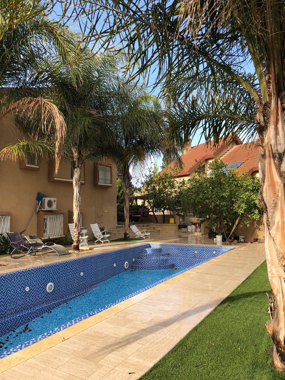 Villa boutique ubicada en un lugar pastoral y tranquilo que da una sensación de calma y tranquilidad y expande la sensación de cuerpo y mente. Ubicado en el encantador asentamiento de Carmit, a pocos minutos de la capital de Negev, Be 'er Sheva. Si estás buscando unas vacaciones en familia, has venido al lugar correcto La villa servirá como punto de partida para una variedad de actividades y paseos por la naturaleza, lo que expondrá a los niños a experiencias diversas y especiales. Todo esto, por supuesto, no significa que los niños no puedan disfrutar de todas las atracciones que ofrece la Villa. (Consulta la descripción del anuncio). Y a las parejas se les permite unas vacaciones románticas y relajantes