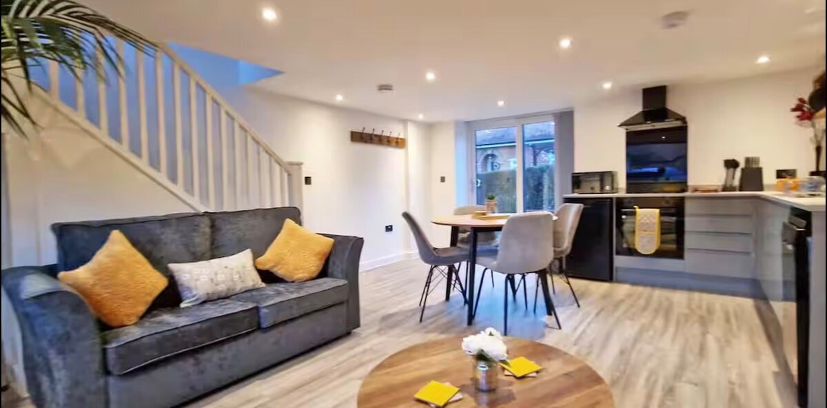 Bienvenido a nuestra encantadora casita de campo situada en el corazón de Castle Donington, una propiedad encantadora y acogedora que ofrece un ambiente cálido y acogedor, con características originales complementadas con toques modernos. Ubicación céntrica, a 1 minuto a pie de la calle principal. Cerca de Donington Park Race Track y el aeropuerto de East Midlands. Parada de autobús SkyLink a 2 minutos a pie, cada 20 minutos por la mañana y cada hora por la tarde, directo al aeropuerto y a Derby, Loughborough y Leicester. Botella de cava de cortesía para estancias de 2 noches o más ☺️