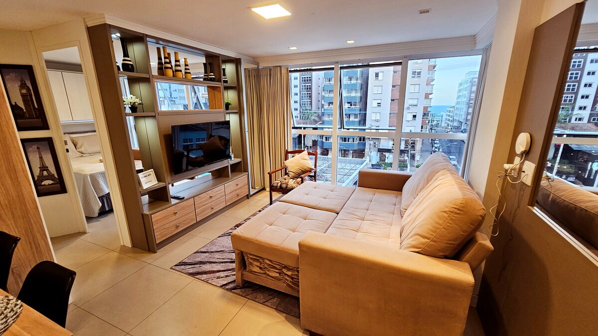 Hermoso estudio totalmente amueblado y decorado a una cuadra de Praia da Cal y a dos cuadras de Lagoa do Violão. Vistas al mar con balcón privado. Aire acondicionado, cama queen, parrilla, wifi, horno multifuncional (microondas y horno), cocina, nevera. ¡Disfruta de lo mejor de Torres en contacto con la naturaleza!