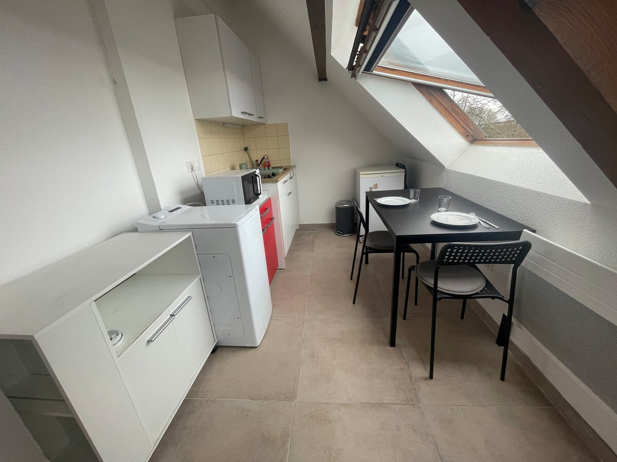 Agradable y luminoso apartamento de 46 m², en la planta baja de una casa, con puerta de entrada individual. Consta de una sala de estar con cocina y TV, un gran dormitorio con zona de lectura y escritorio, así como un baño con inodoro, ducha/bañera. Una plaza de aparcamiento está disponible en el patio para aparcar. El alojamiento se encuentra en una zona tranquila a 2 minutos a pie de la estación de tren, un supermercado y a 5 minutos del bonito centro de la ciudad de Thann.