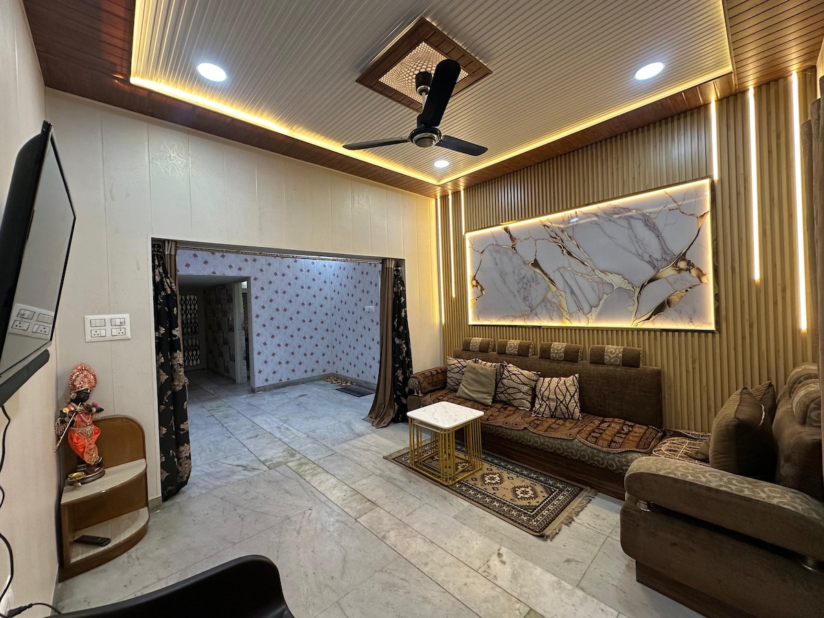 En este alojamiento se respira tranquilidad: ¡relájate con toda la familia! Tiene su propia entrada privada a través de un bonito jardín. Elegante y confortable apartamento de dos dormitorios con baño adjunto y cocina totalmente equipada con una moderna estufa, nevera, té, café, utensilios y todo lo necesario para una estancia encantadora en la hermosa Gorakhpur. Aparcamiento gratuito en la calle. Tiendas generales locales dentro de 2 minutos a pie.