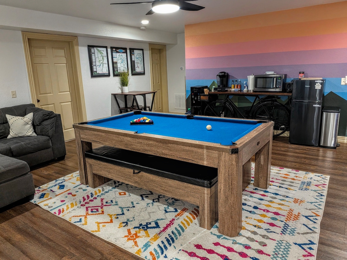 Pickleball y rutas en bicicleta. Loft de juegos para niños y TV de 75 pulgadas