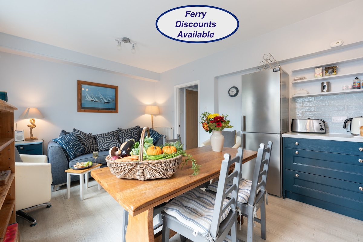 Mulberry Cottage se encuentra en una zona de excepcional belleza natural. Escondida discretamente por un camino rural sin asfaltar, rodeada de campos y bosques. Tiene su propio jardín privado con una bañera de hidromasaje recién añadida, perfecta para divertirse en familia o relajarse después de explorar. ¡Ya podemos ofrecer DESCUENTOS EN EL FERRY! Envíanos un mensaje para obtener más información. Si estamos completos para las fechas que necesitas, echa un vistazo a airbnb.com/theoldstables2 para encontrar alojamiento alternativo en el sitio.
