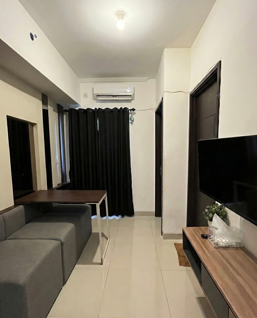 Ubicado en el piso 22 de la Torre A, este estudio fue renovado en mayo de 2025, con un interior fresco con wifi y Netflix. El apartamento está equipado con aire acondicionado, nevera, cocina y servicios básicos completos para tu comodidad. Las instalaciones del edificio incluyen gimnasio, piscina, parque infantil y seguridad las 24 horas. #Apto para 2 huéspedes. Para el alquiler mensual, recargaremos la electricidad con 600 000 IDR, que suele ser suficiente para un mes. Te damos la bienvenida y te hacemos sentir como en casa 💕