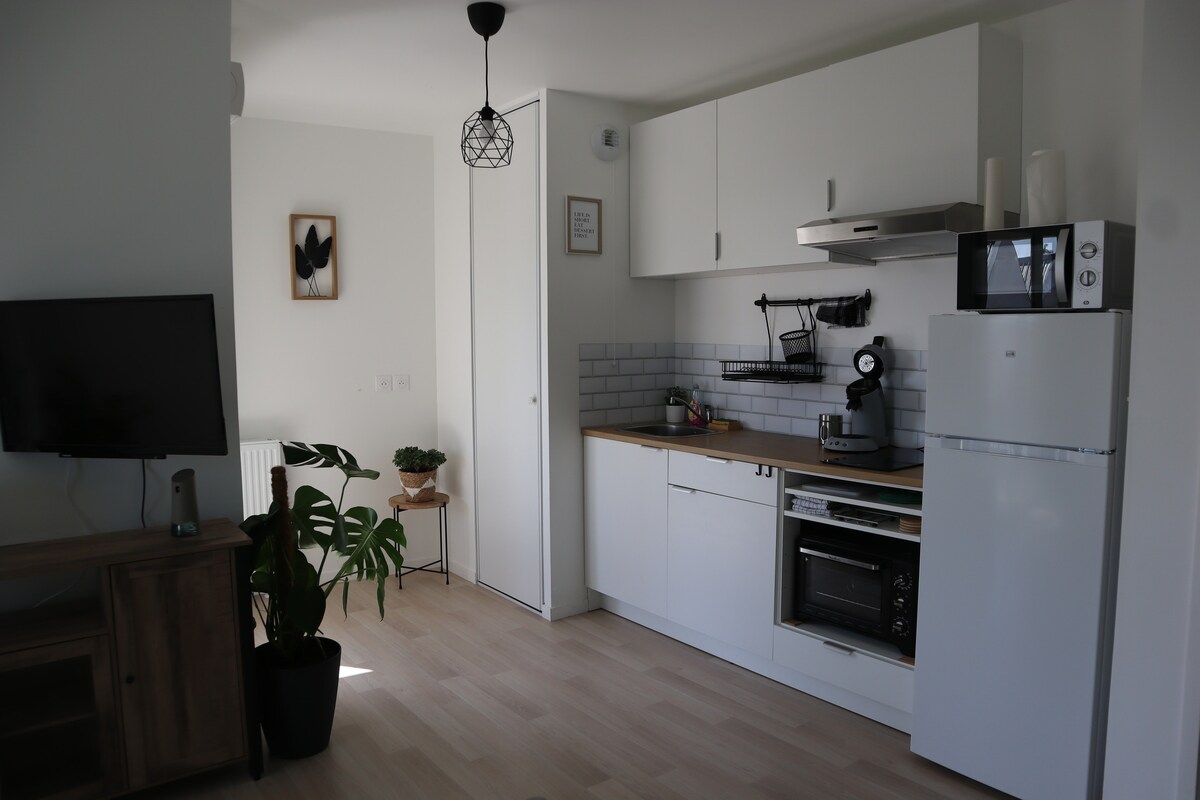 Disfruta de un alojamiento elegante y céntrico. Maravillosa villa pequeña detrás de la carretera principal y a solo minutos a pie del centro de Caen. - Terraza con brasero - Calefacción reversible Aire acondicionado - Disponibilidad de toda la ropa de cama (sábanas, toallas de baño, paños de cocina...) - Regalos de bienvenida: jabón, champú, cápsulas de café... - Limpieza de salida