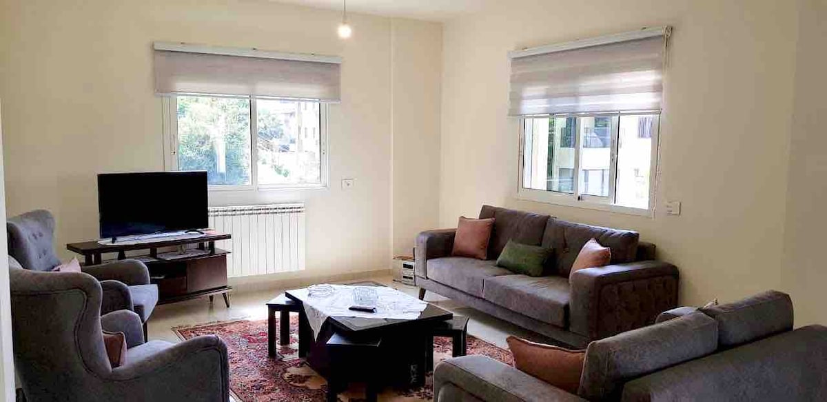 Te damos la bienvenida a nuestro acogedor y elegante alojamiento, donde puedes encontrar la tranquilidad. Nuestro alojamiento es un hogar perfecto lejos de la multitud para aquellos que buscan una estancia cómoda y cómoda. Una zona tranquila con vistas panorámicas a la montaña, 15 minutos de acceso al distrito central de Beirut, a 10 minutos del centro comercial más grande del Líbano y a 5 minutos de la famosa calle restaurantes de Broumana.