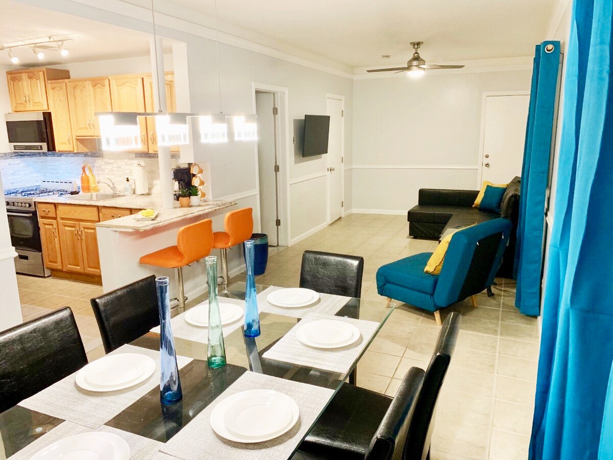 ¡Qué delicia! Disfruta de este espacioso y bien ubicado apartamento en el segundo piso solo para ti... ¡TV en el dormitorio, así como en la sala de estar! Este acogedor alojamiento te ofrecerá las comodidades de un hotel, pero con más espacio y a un mejor precio. Decorado con buen gusto con toques modernos. ¡Tiene capacidad para un máximo de 5 huéspedes! ¡Aparcamiento gratuito para 1 vehículo y lavandería en las instalaciones! ¡Verdaderamente tu hogar lejos de casa! A 2 manzanas de mi casa hay un parque acuático, pistas de tenis y canchas de baloncesto.