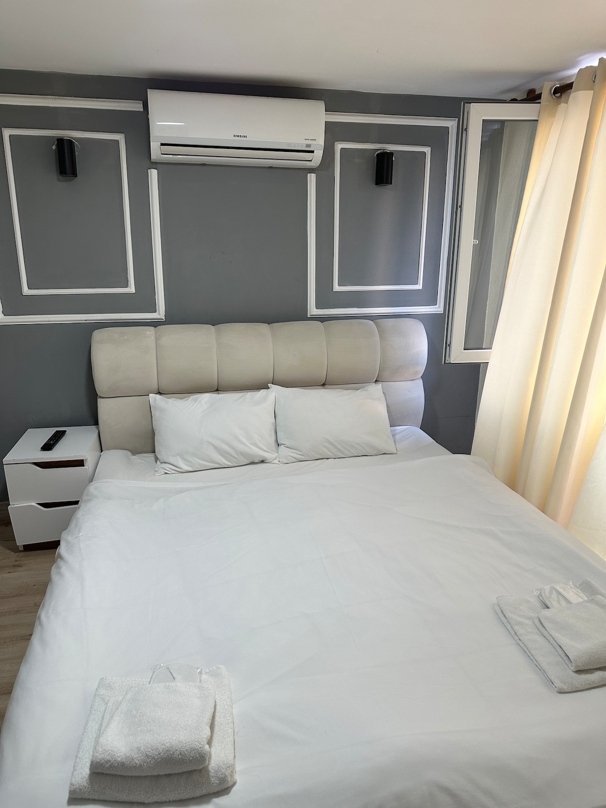 Este apartamento único se encuentra en nuestro moderno hotel boutique en Ortaköy, Estambul, a solo 2 minutos a pie de la costa de Ortaköy, el emblemático puente del Bósforo, la mezquita Ortaköy y las populares tiendas de kumpir y gofres. Cuenta con un amplio dormitorio, una sala de estar y un jardín privado en el patio trasero totalmente amueblado para relajarse al aire libre. Con dos aparatos de aire acondicionado, cocina totalmente equipada, lavadora y TV de 40 pulgadas, el lujoso y moderno diseño garantiza una estancia cómoda para dos huéspedes.