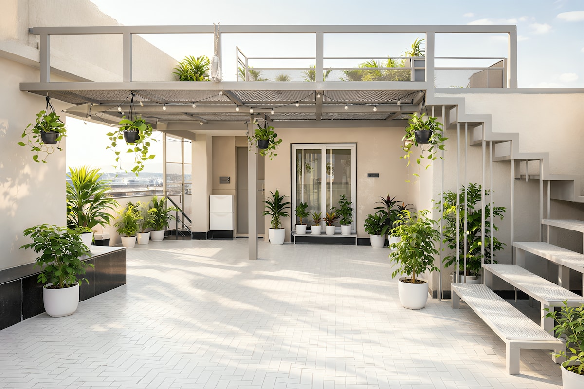 Prasama, de @akrutistays Un apartamento de 1 dormitorio cuidadosamente dispuesto que combina tonos de madera rústicos, detalles en tonos tierra, un estilo bohemio y comodidades modernas. Este alojamiento especial está cerca de todo, por lo que es fácil planificar tu visita, y es ideal para 2 adultos y 1 huésped, con cama queen y sofá cama. Hemos pasado años hospedando como Superanfitrión con un servicio de calidad comprobada. Seguimos estrictamente los buenos estándares de higiene y ofrecemos a los huéspedes una estancia cómoda. Haremos todo lo posible para ofrecerte una estancia increíble.