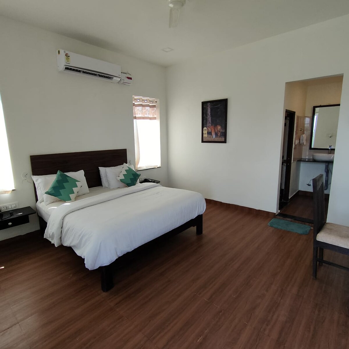 La reserva de Tadoba Tiger es probablemente el parque nacional más bonito de la India que ofrece la máxima oportunidad de ver a un tigre en la naturaleza. Whitehouse Farms ofrece el mejor alojamiento para familias y está convenientemente ubicado cerca de la puerta Kolara de Tadoba. Tenemos cuatro suites con aire acondicionado. Las suites son grandes ( 400 pies cuadrados) lujosas, cómodas con inodoro adjunto y terraza privada. También ayudamos a los huéspedes ( grupo de 6 a 8 ) con paquetes que incluyen reservas de safari y recogida en Nagpur.