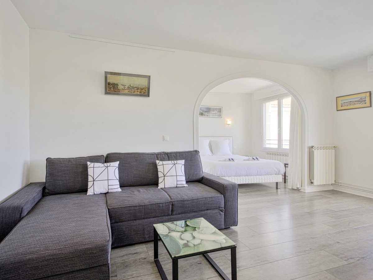 Estudio de lujo en alquiler para sus vacaciones con unas vistas inmejorables del océano. Está idealmente situado: la playa del Miramar justo debajo, muy cerca del hotel du Palais, la gran playa y el centro de la ciudad de Biarritz y las tiendas del barrio de St Charles se encuentran a pocos minutos a pie. El estudio se encuentra en la residencia privada del Sofitel Miramar***** podrá acceder a su talasoterapia y a sus diversos servicios (50 € media jornada).