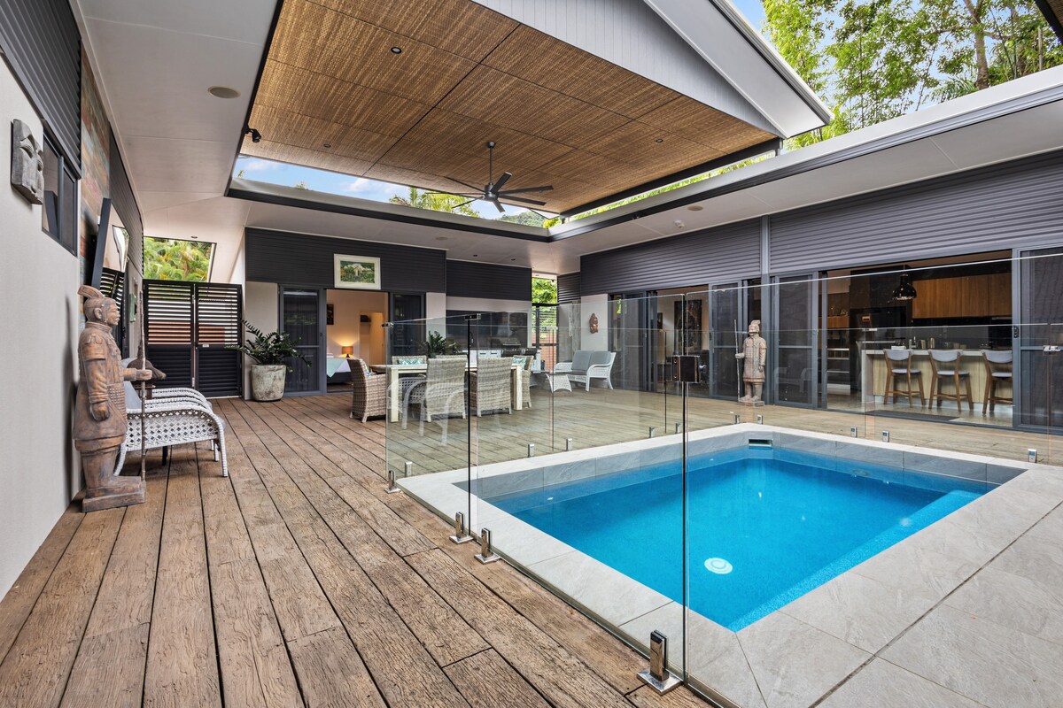 Refúgiate en un pequeño paraíso, con una gran piscina en la puerta y la playa a un paseo rápido. Cerca de Palm Cove y a 30 minutos en coche de la ciudad. En nuestro jardín tropical, la casa de huéspedes con temática de playa tiene todas las comodidades de un hogar. Amplio, con aire acondicionado, cocina, barbacoa y muebles junto a la piscina. Wifi gratuito + Netflix. Nuestra casa está al otro lado del jardín. Muy a mano para consejos locales o cualquier cosa que necesites. ¡Ven y quédate, nos encantaría compartir nuestro pequeño paraíso contigo!